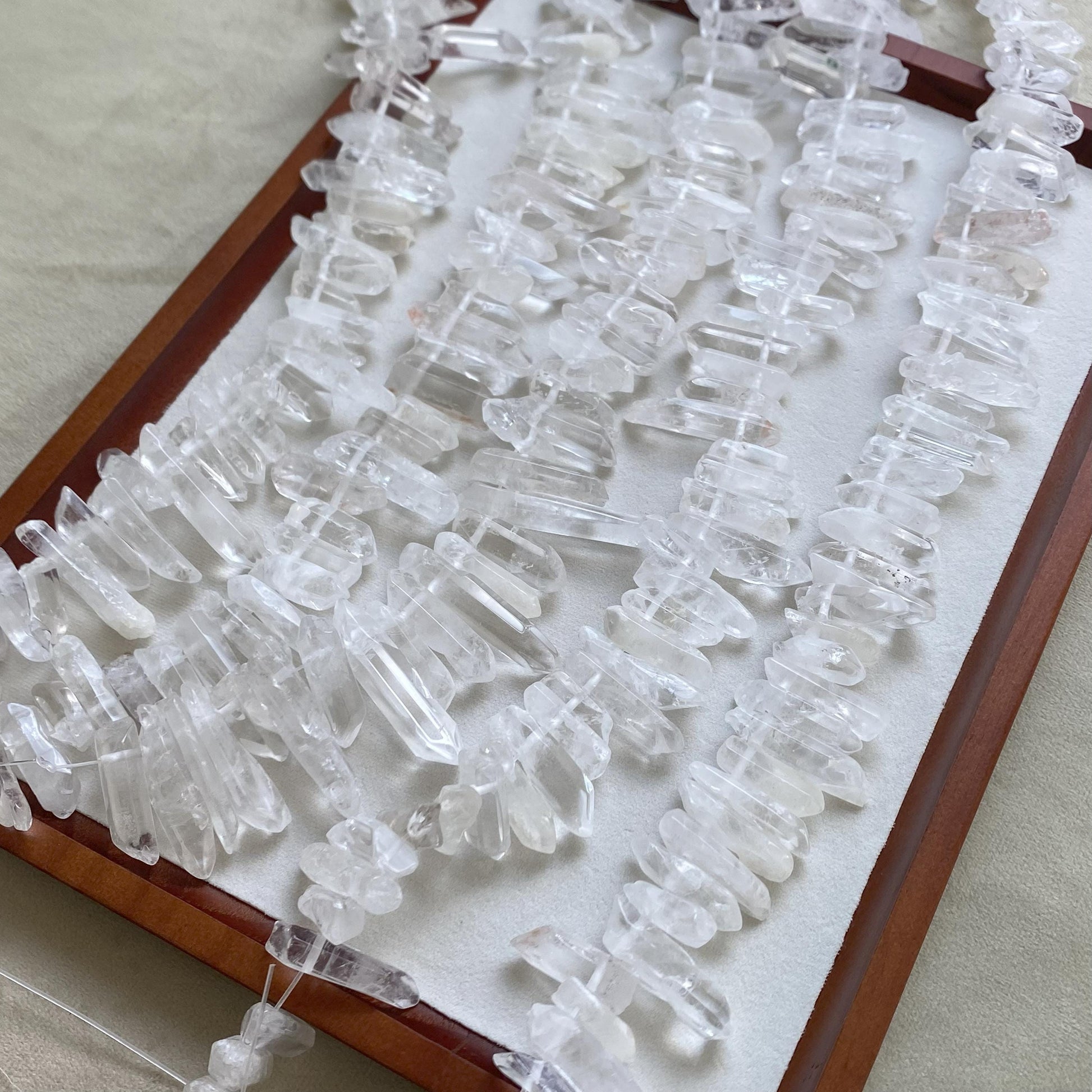 Natürliche Bergkristall Stäbchen sind perfekt für DIY Schmuck 🌿. Die klaren Quarz-Stäbe in verschiedenen Größen bringen eine einzigartige, natürliche Ausstrahlung in deine Designs und sind vielseitig einsetzbar.