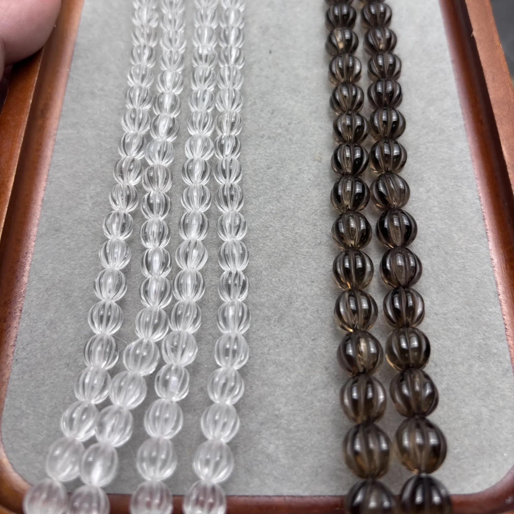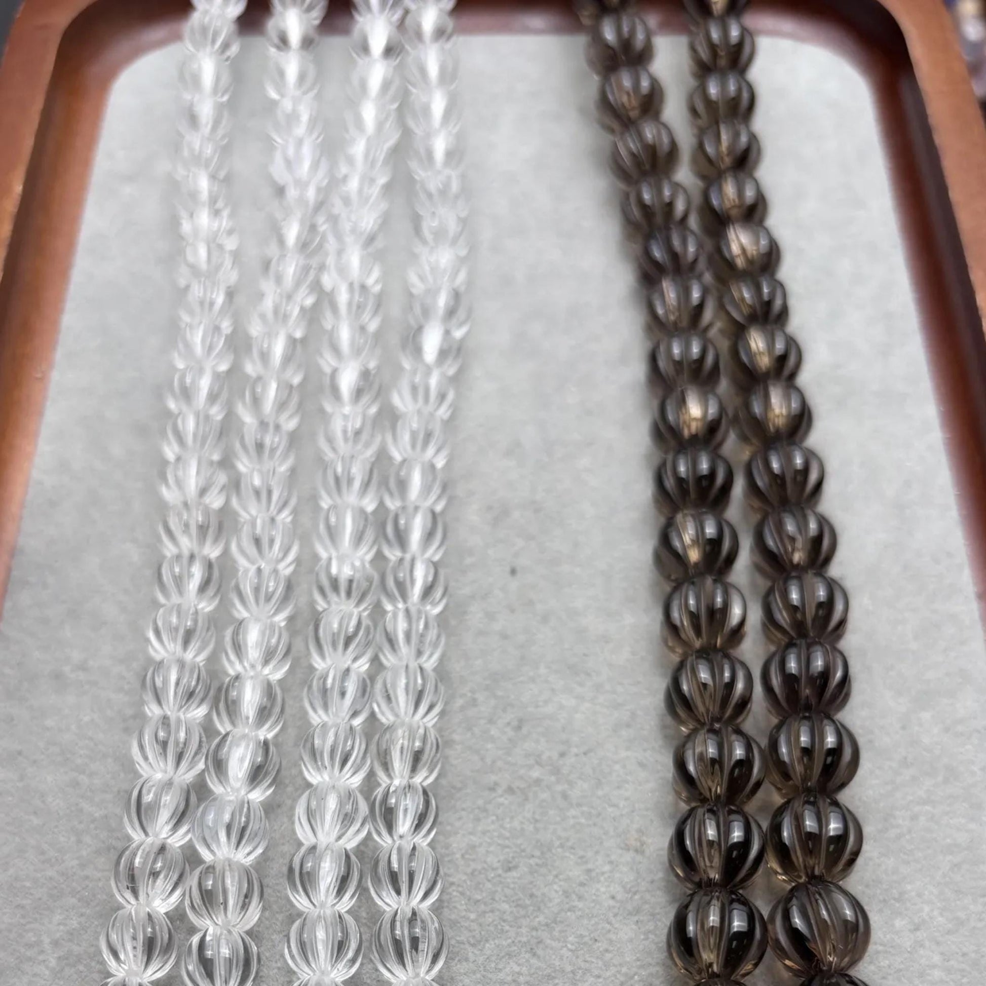 Diese natürlichen Bergkristall und Rauchquarz Melonenperlen sind perfekt für DIY Schmuckprojekte. Mit ihrer geschnitzten Laternenform verleihen sie jedem Design eine elegante Textur und eine edle Ausstrahlung. Ideal für Ketten, Armbänder oder spirituellen Schmuck. 💎✨