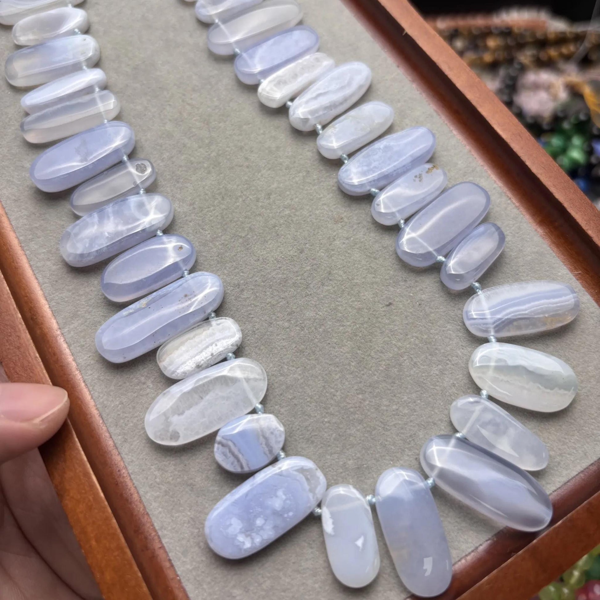 Natürliche Blauachat Lace Perlen Strang, Polierte Flache Oval Edelsteinperlen, Heilsteine für DIY Schmuck, Armbänder und Halsketten