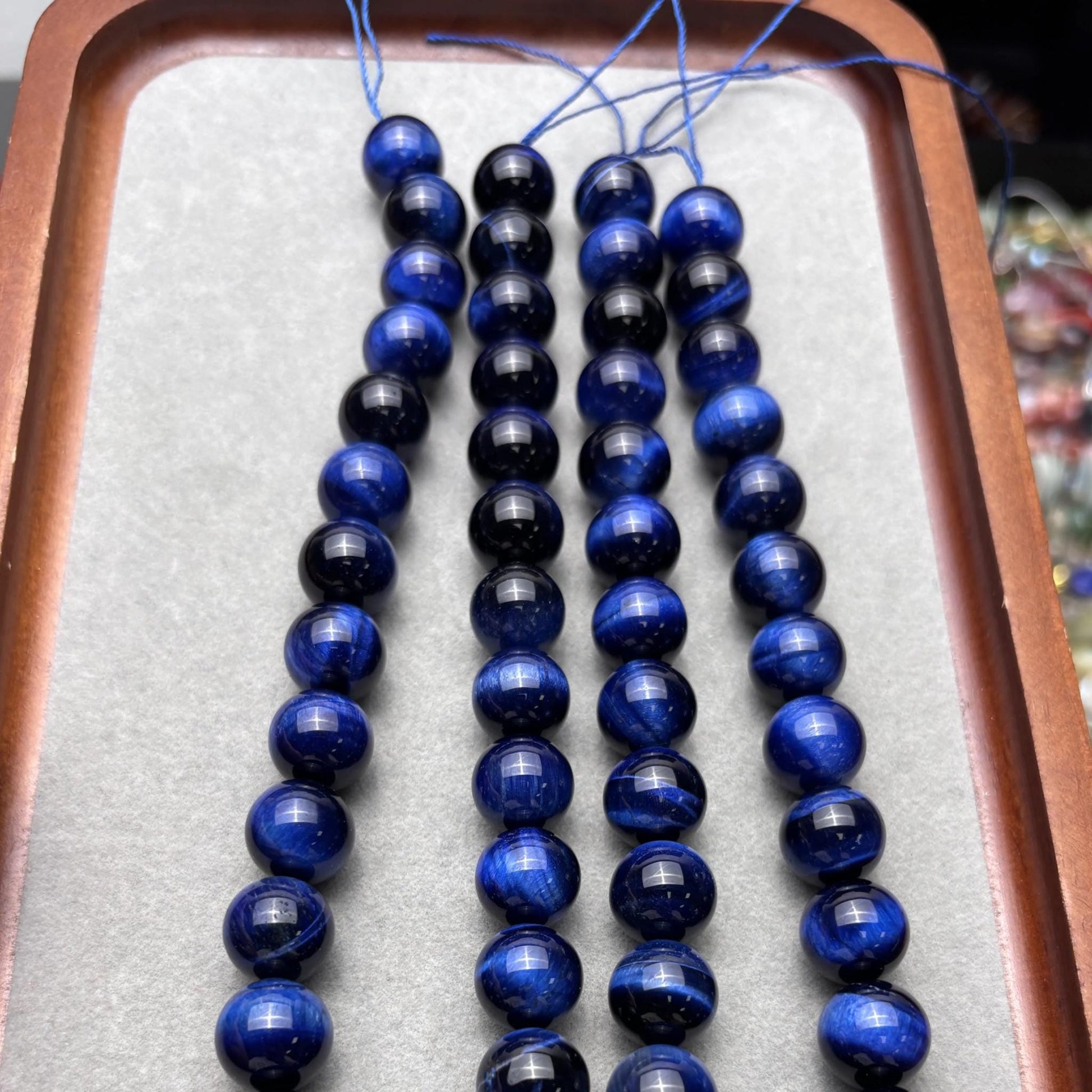 Natürliche Blaue Tigerauge Perlen Strang, Glatte Runde Edelsteinperlen, Heilsteine für DIY Schmuck, Armband und Halskette Basteln