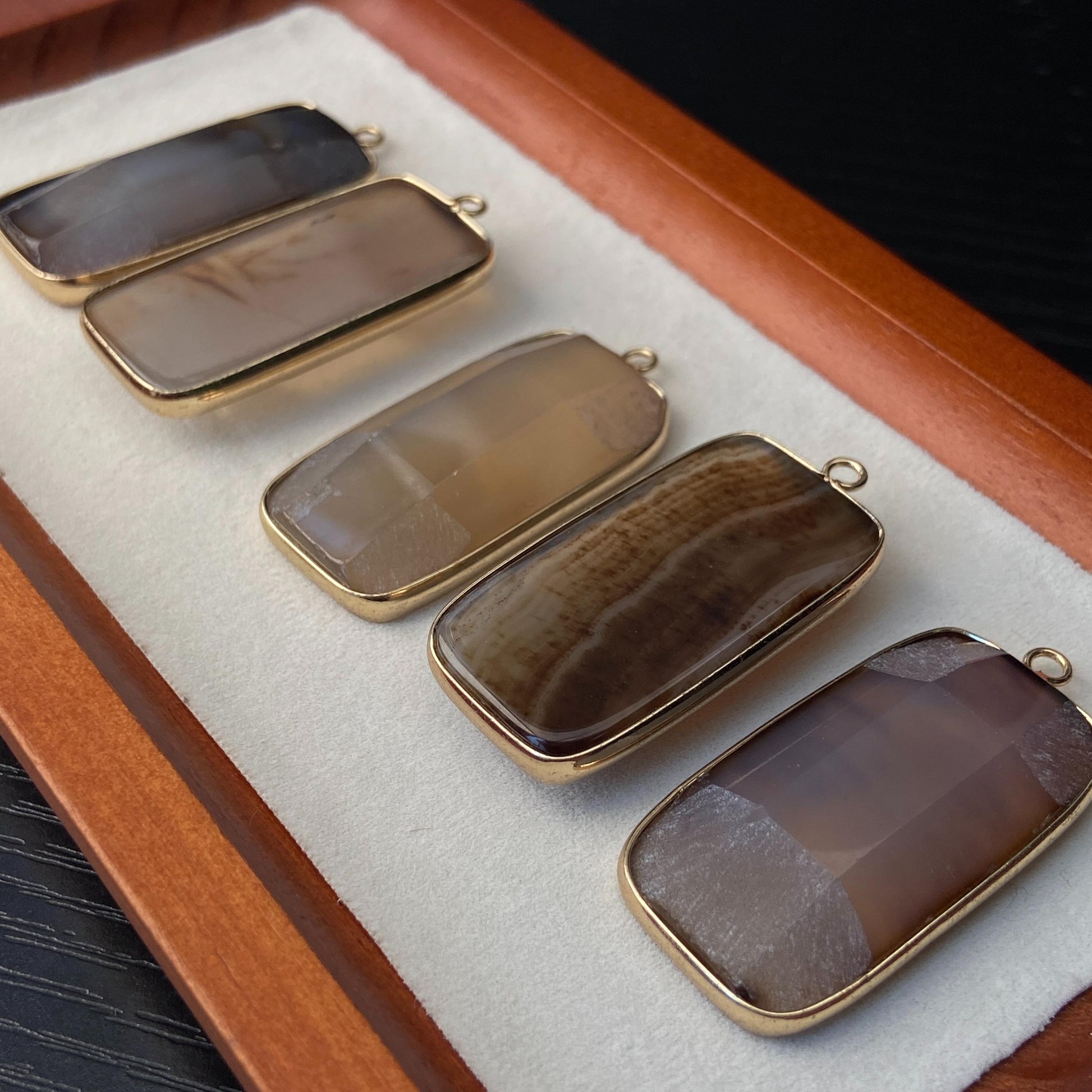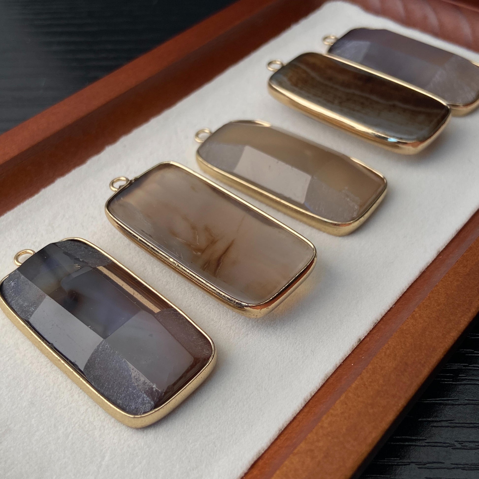 🪨 Material: Echter Naturachat mit Messingfassung, vergoldet