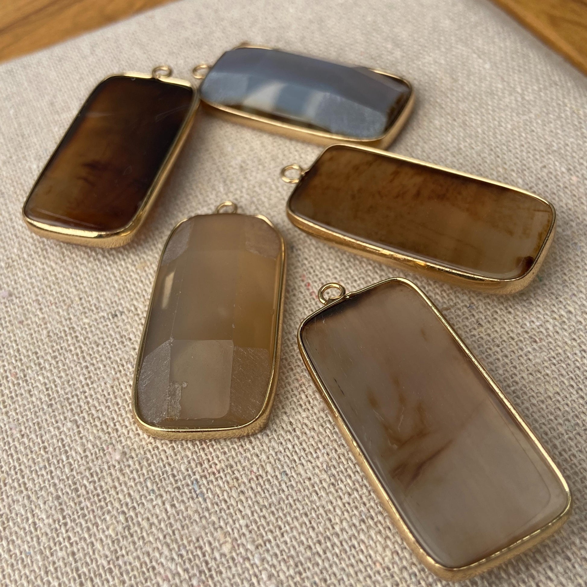 Natürlicher Achat Anhänger für DIY Schmuck · Goldrand · Facettierter rechteckiger Edelstein · Boho Bastelperle für Halskette