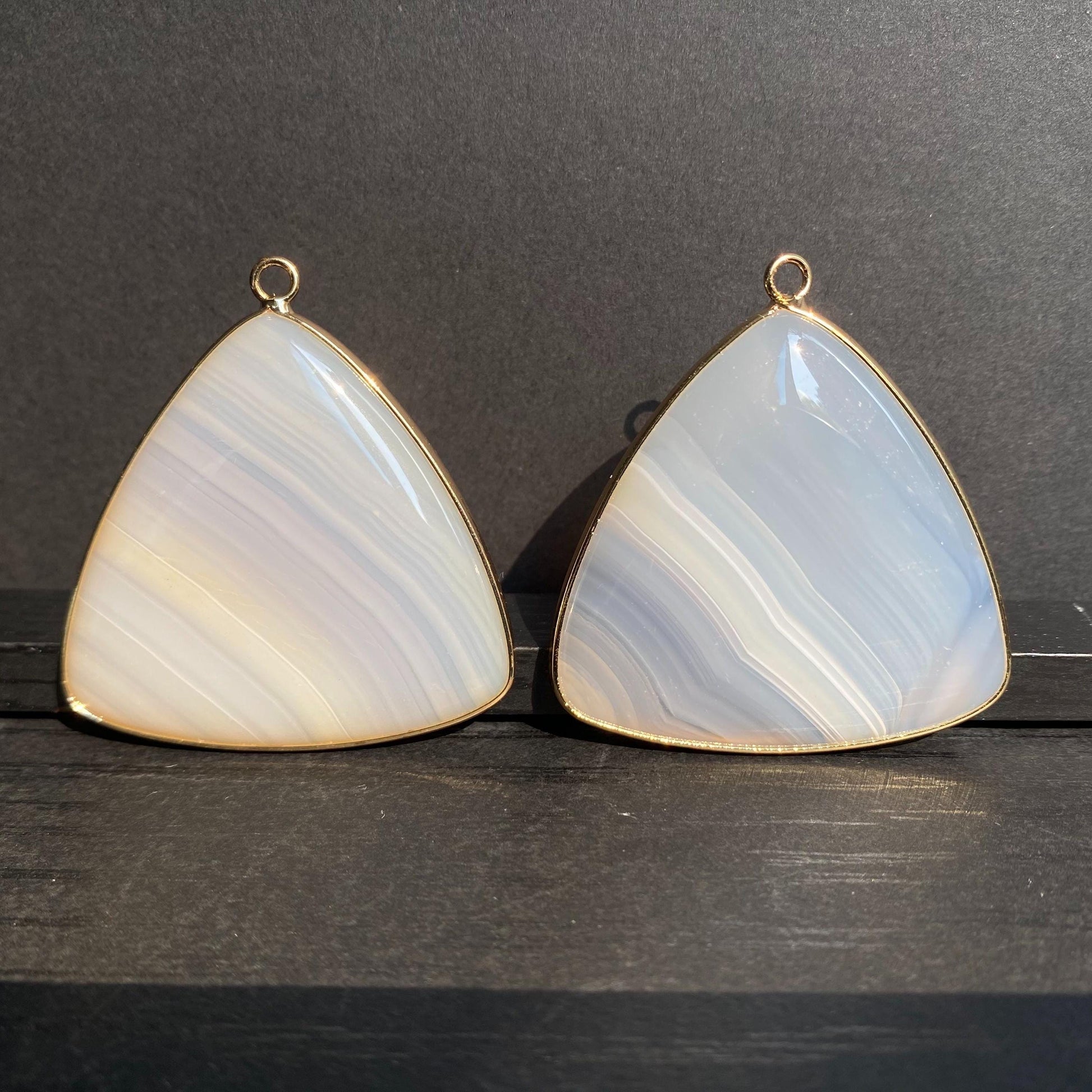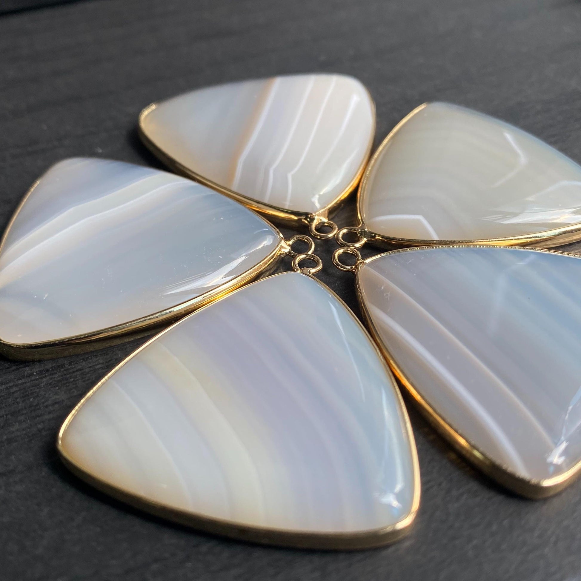 ✨ Einzigartiger natürlicher Achat Anhänger in Dreiecksform mit hochwertigem vergoldetem Rand - perfekt für handgemachte Schmuckkreationen mit Stil und Energie.