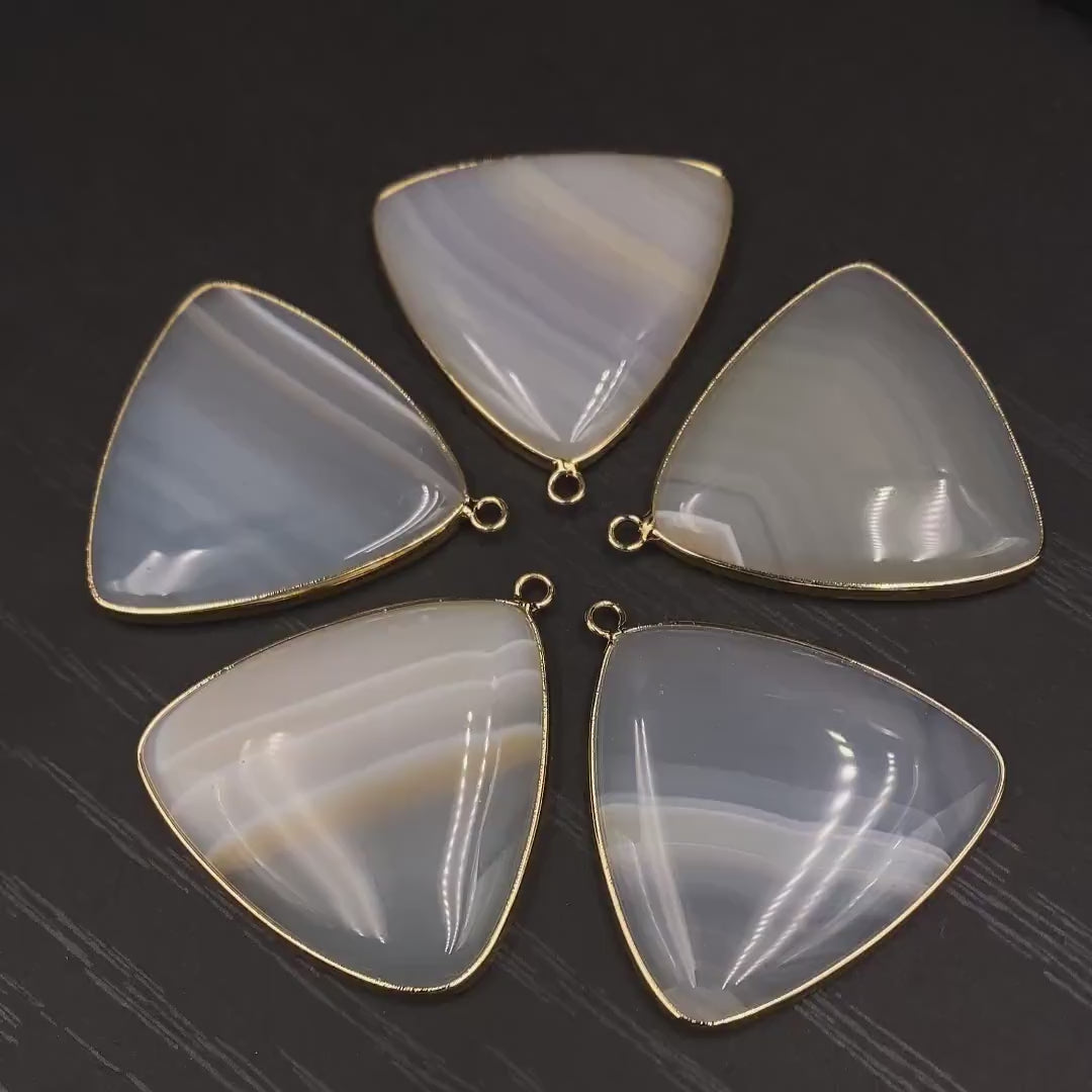 Natürlicher Dreieck Achat Anhänger mit vergoldetem Rand für DIY Schmuck, polierte Heilstein Perle für Boho Halsketten oder Ohrringe