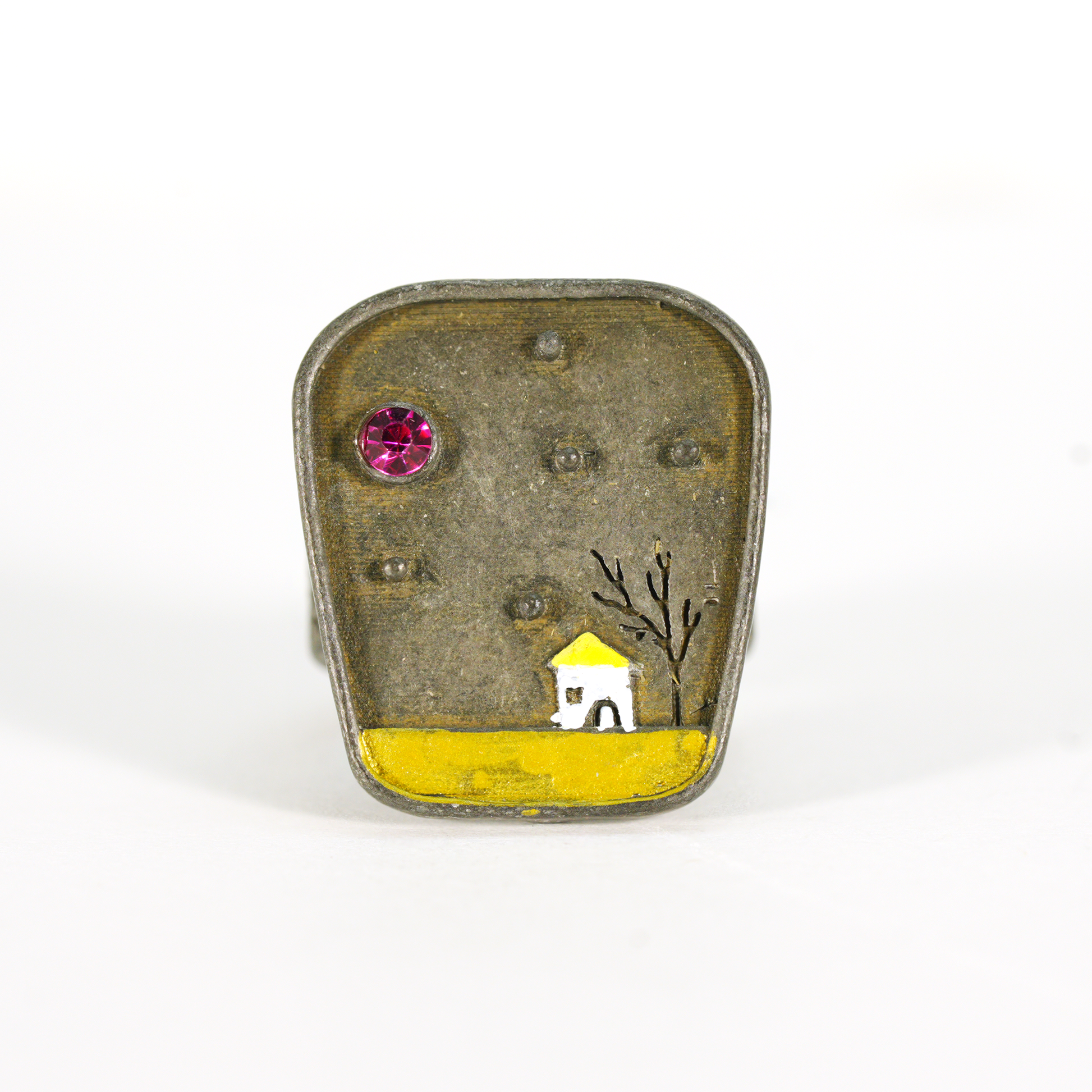 This ring captures a poetic little moment — a lone house, a bare tree, a pink star above.