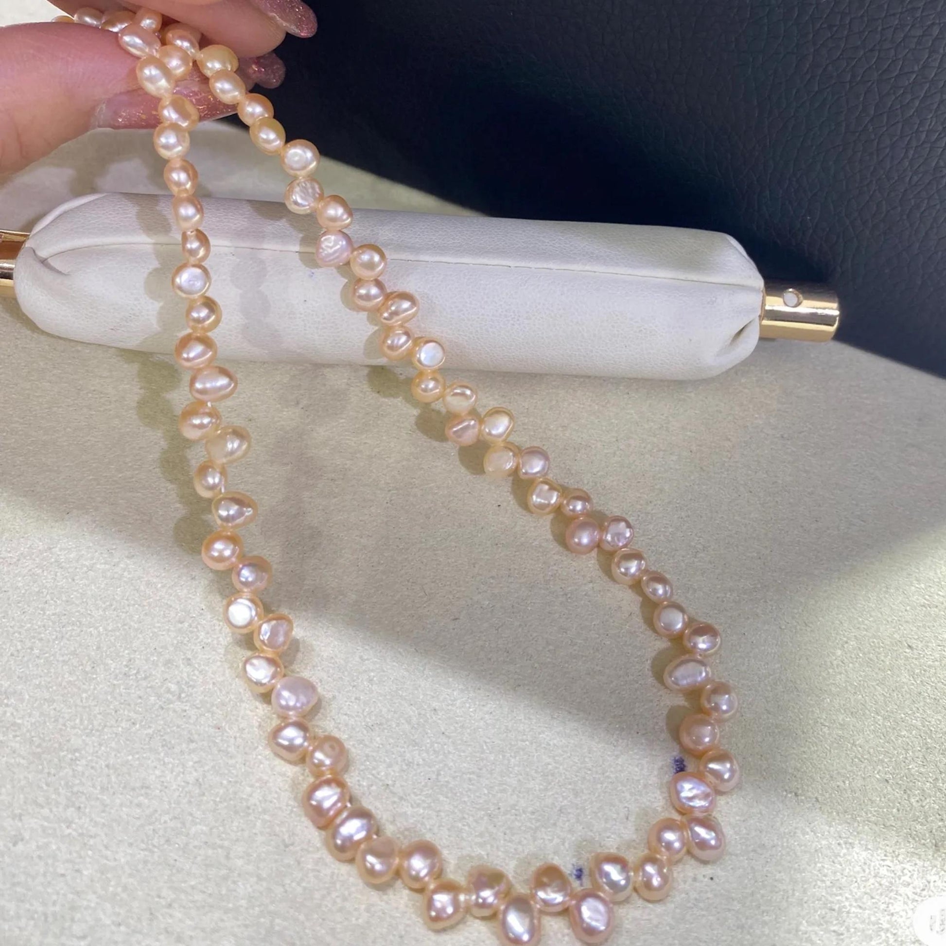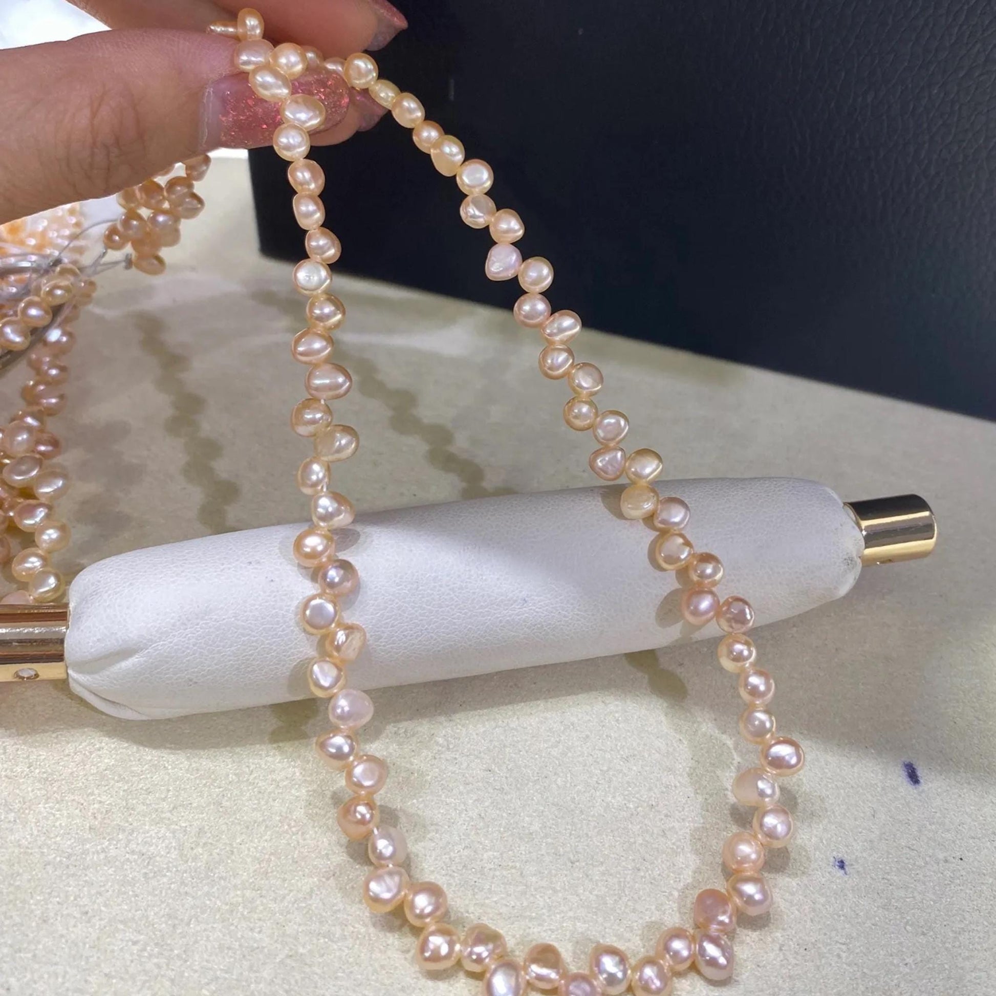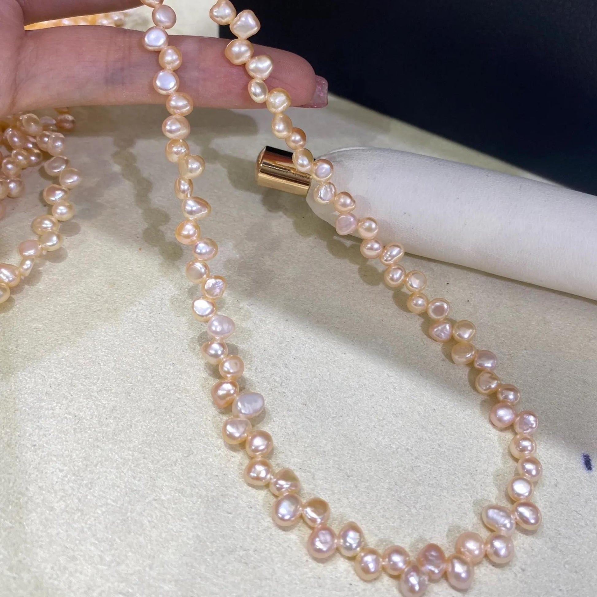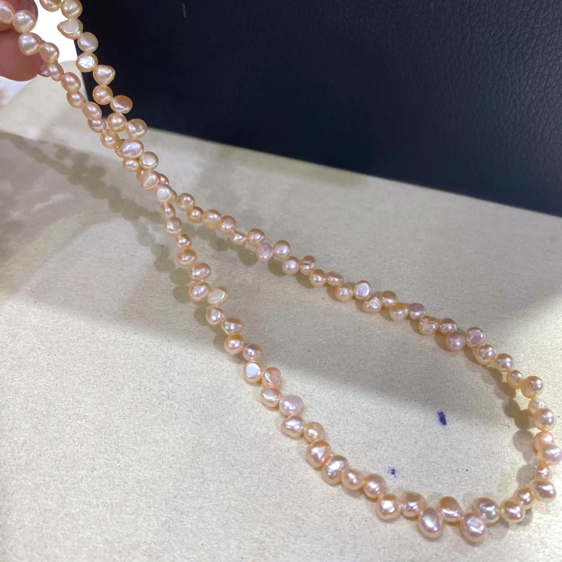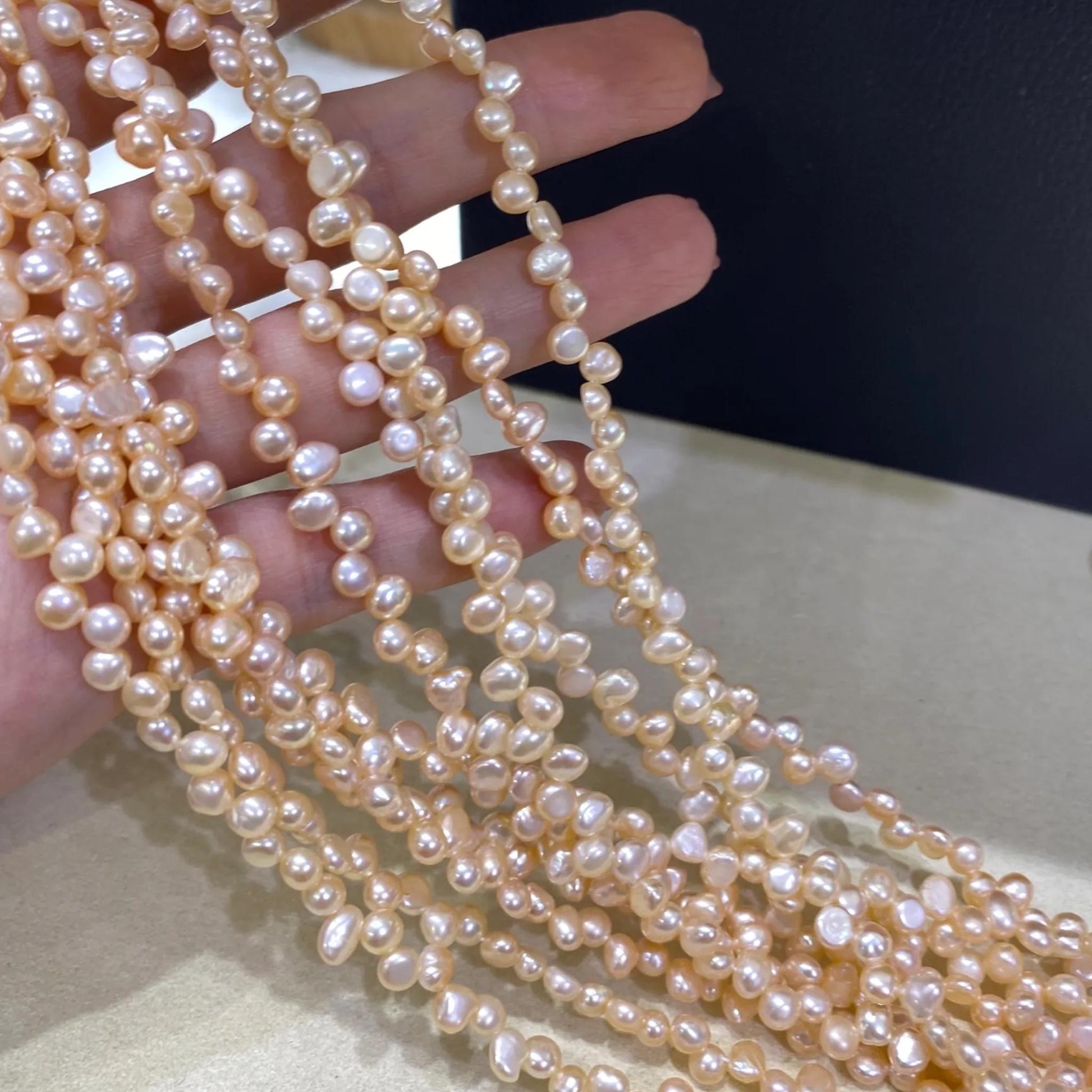 Pfirsichfarbene Barockperlen mit schrägem Bohrloch, natürliche Süßwasserperlen für Schmuckherstellung, kleine Blütenform DIY Perlenstrang