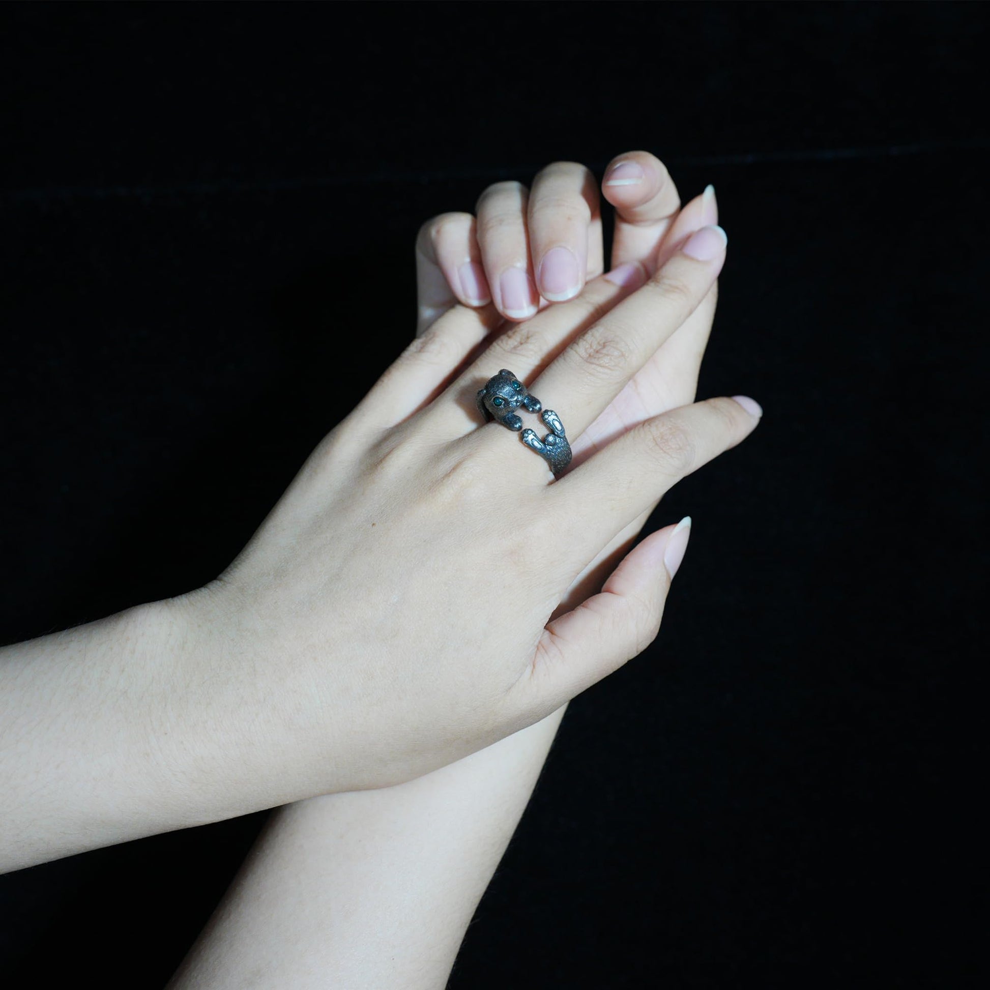 Handcrafted Rabbit Ring with Green Zircon, Spring Awakening Symbol, Unique Silver Jewelry