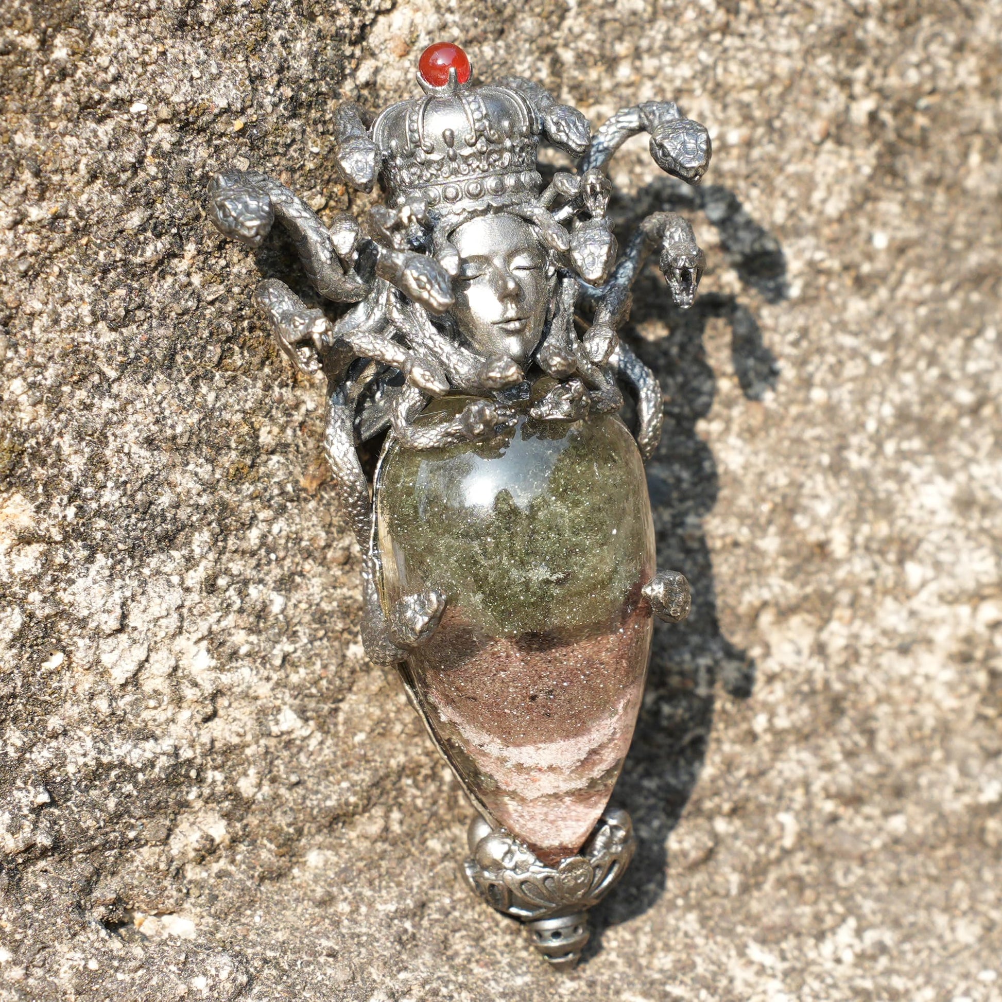 Medusa’s Gaze Pendant | 925 Sterling Silver & Phantom Quartz Necklace | Handcrafted Mythical Jewelry Gift for Fantasy & Art Lovers