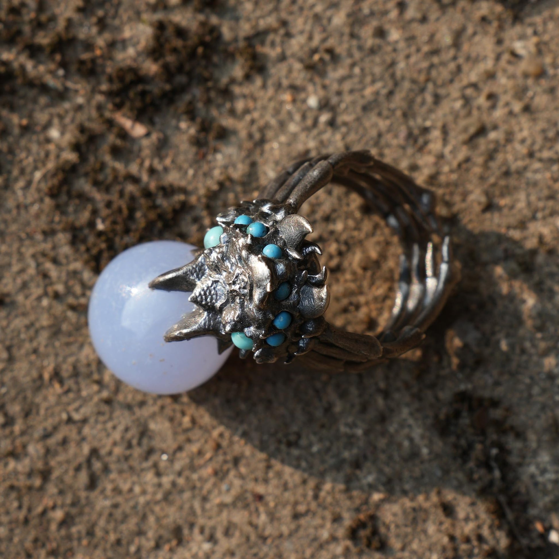 Shadow Claw Agate Ring | Gothic 925 Silver Statement Ring with Agate & Turquoise | Handmade Fantasy Jewelry Gift