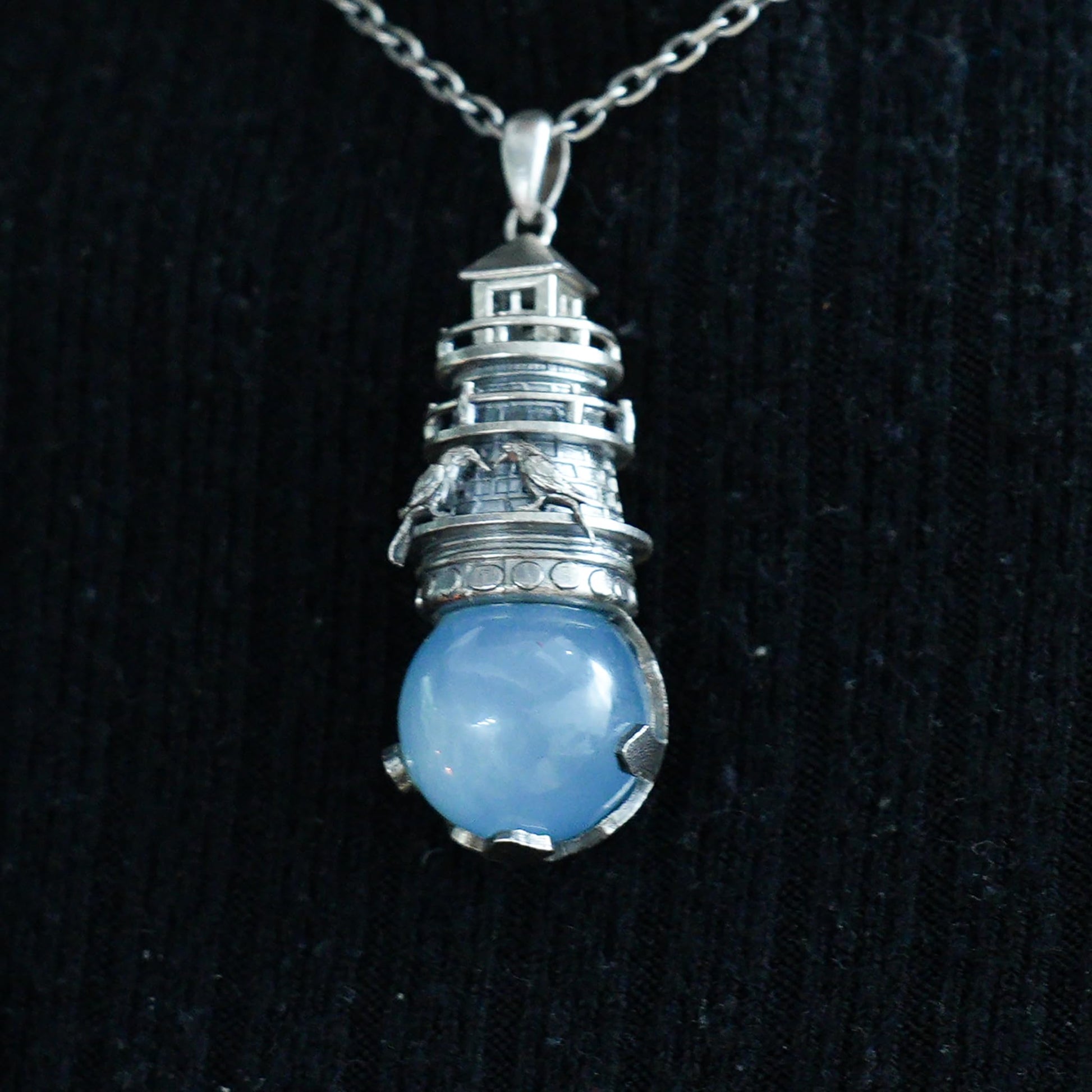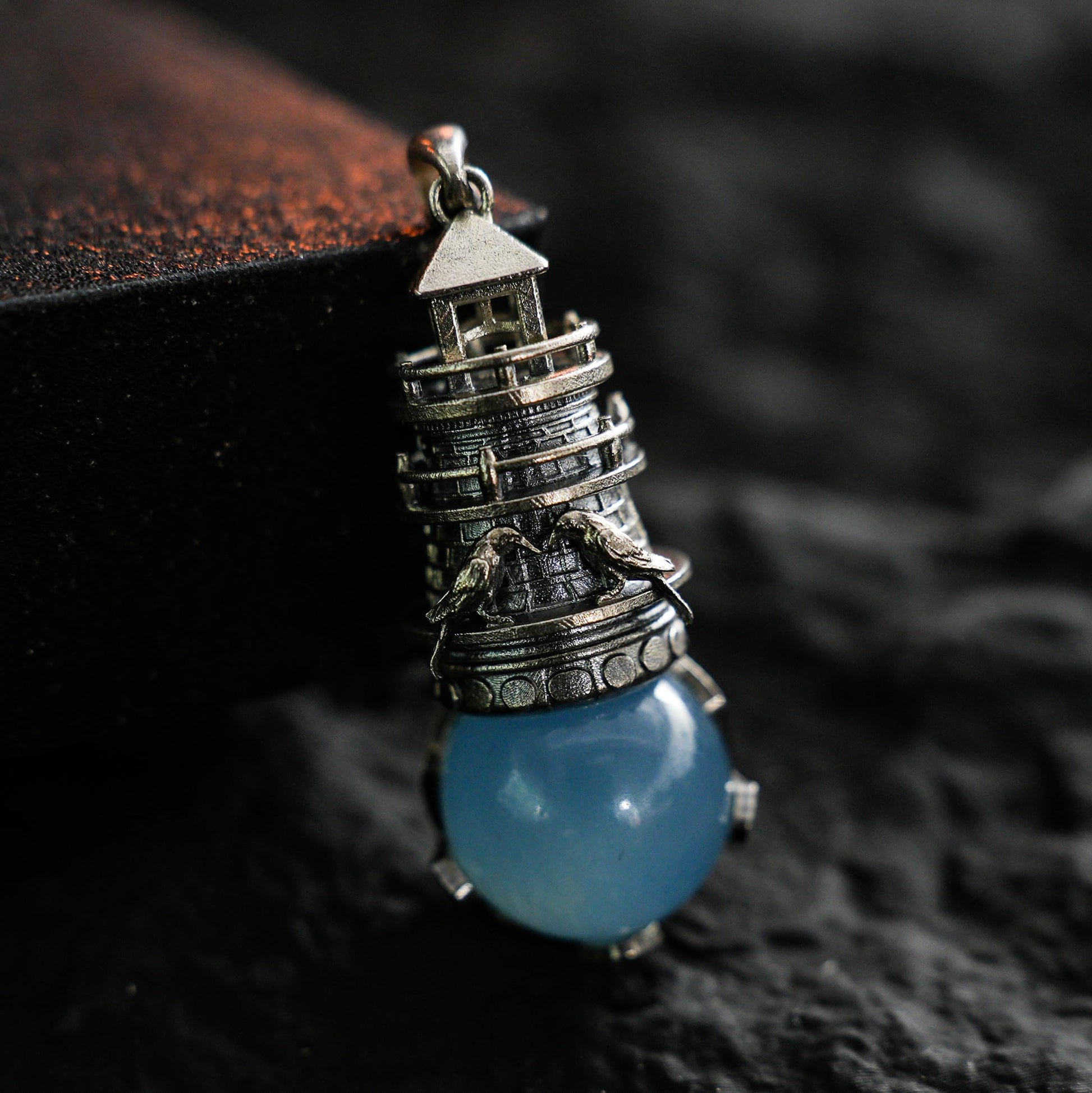 Lighthouse Aquamarine Pendant | 925 Sterling Silver Nautical Talisman | Handmade Pendant of Protection, Safe Return & Hope Gift for Ocean Lovers