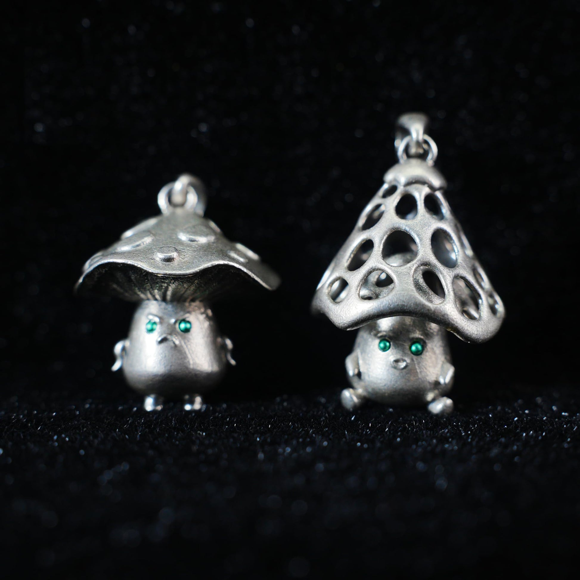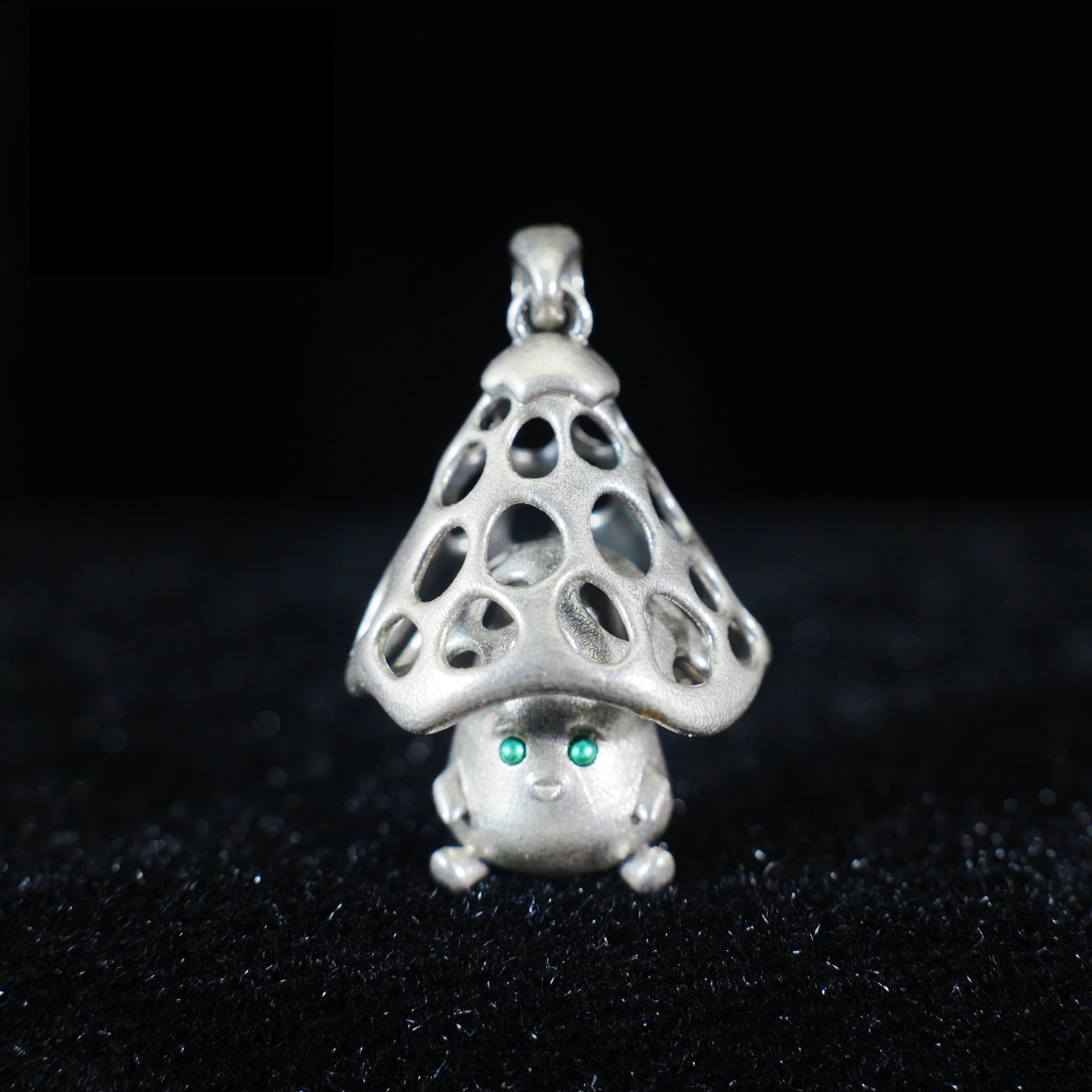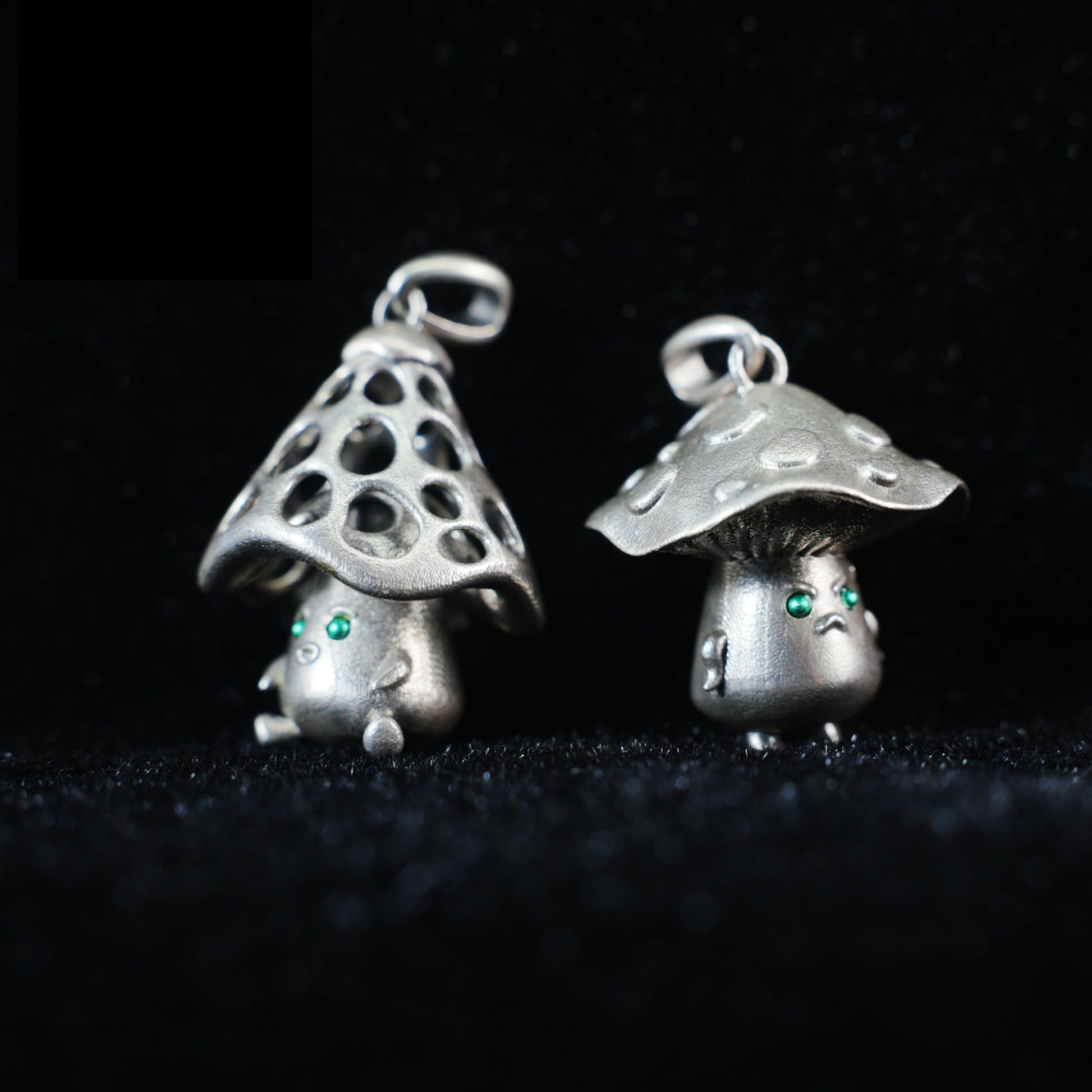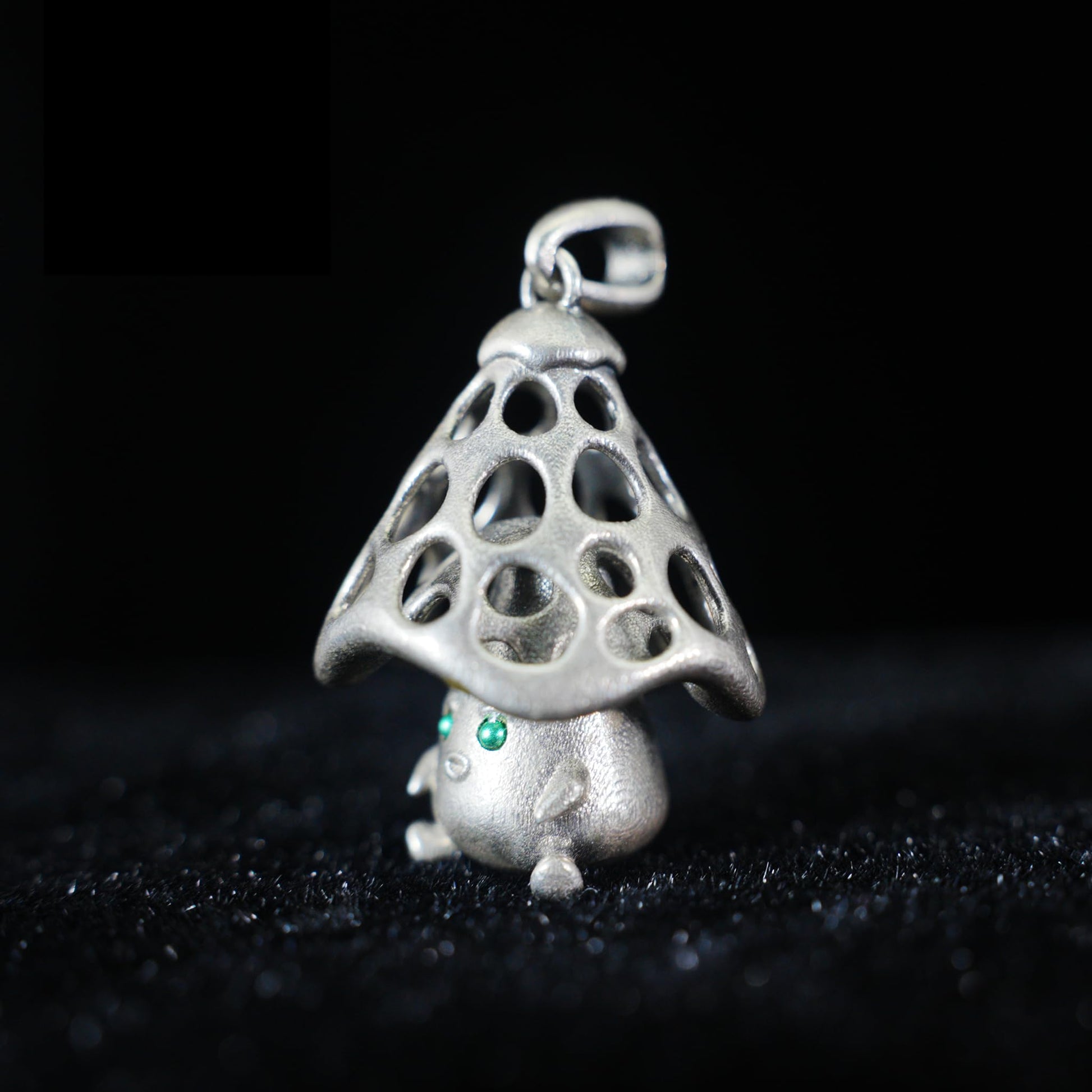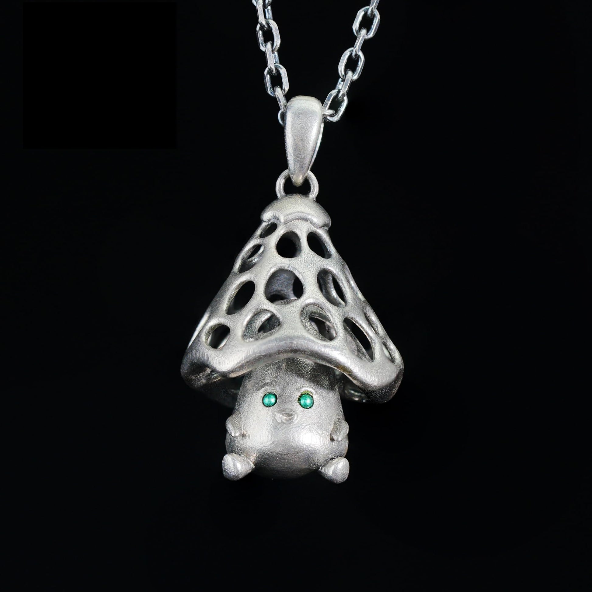 Mushroom Spirit Pendant | Forest Guardian Necklace with Green Zircon Eyes | Fairycore Nature Jewelry Gift for Sensitive Souls