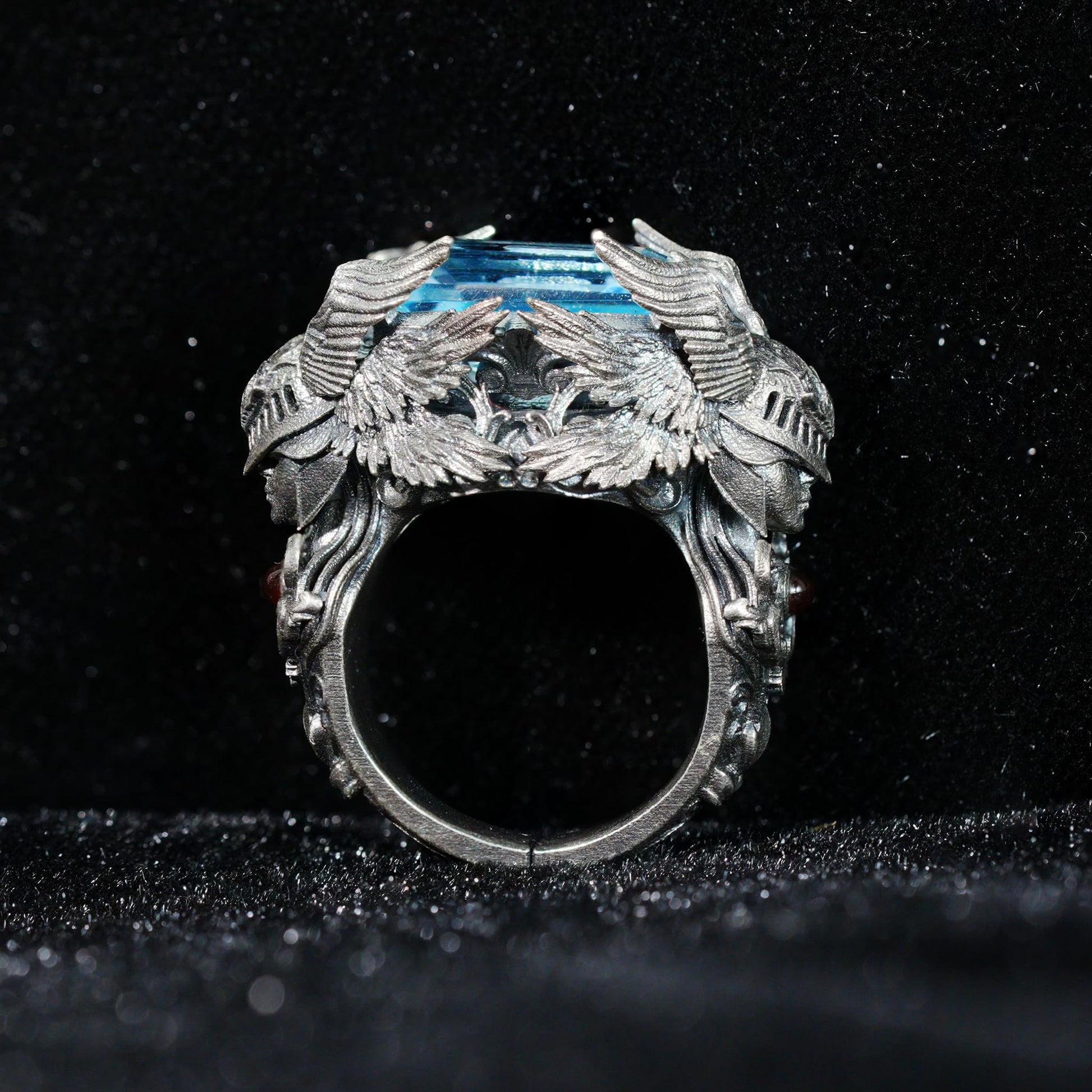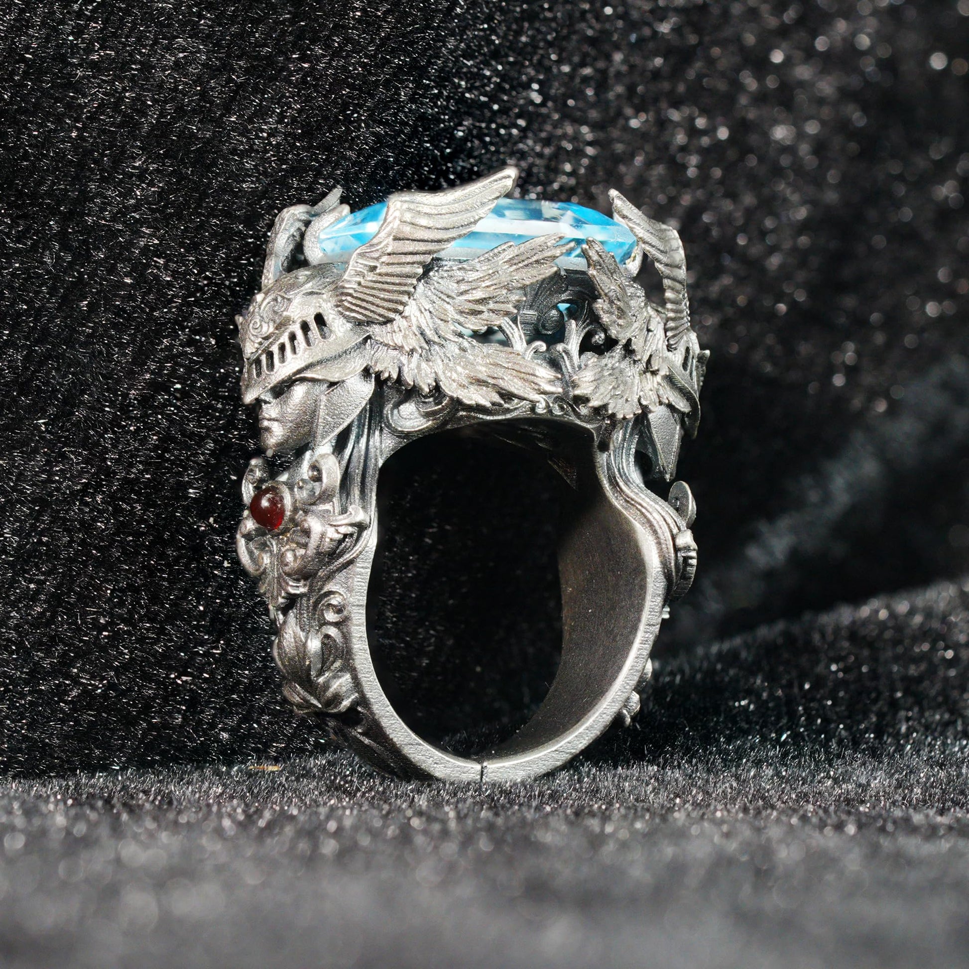 Valkyrie Ring in 925 Sterling Silver with Blue Topaz | Handmade Norse Goddess Jewelry